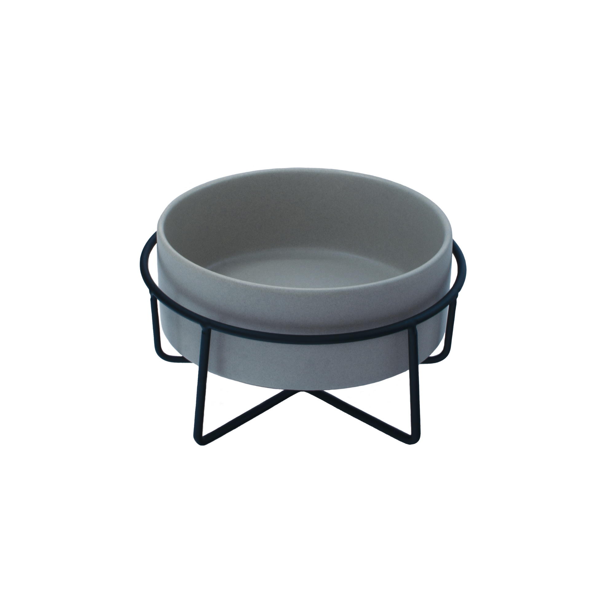 Raised Ceramic Bowl With Metal Stand - Grey - Dog Bowls
